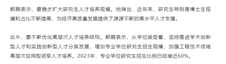与此同时,专硕占比达到了60%,未来,还会继续加大专硕的招生规模,向理工农医类等方向继续倾斜。