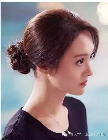 低盘发的造型依旧亮眼,长发盘起来,用自身的长发固定,制造出花朵的效果,低发髻温婉利落,瞬间化身都市OL有木有!