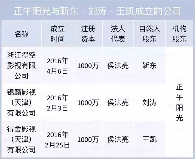 今年1月,华人文化透露已入股正午阳光,占据25%的股份。获得投资后,正午阳光开始了资本层面的一些布局,其中包括跟三位明星王凯、靳东、刘涛分别成了三家公司。1、新成立的三家公司与正午阳光之间不存在任何对赌关系。考虑到正午阳光未来有上市的可能性,在这三家公司中,正午阳光均为控股股东,三家公司都可以与正午阳光财务并表。