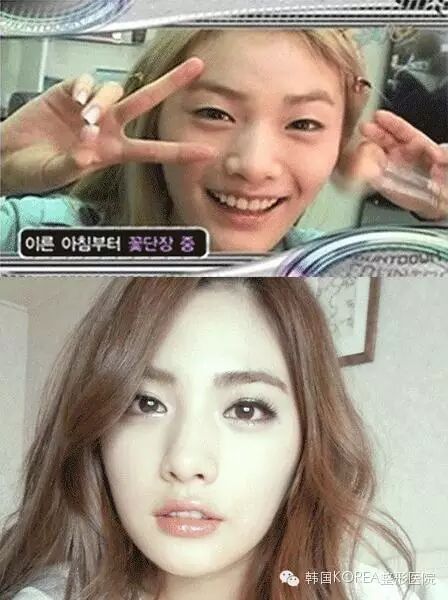眼睛是决定第一印象的重要部分!林珍娜原来的眼睛比较小,而且是单眼皮。而现在眼睛不仅又大又有神,还有非常好看的双眼皮!能不美吗?