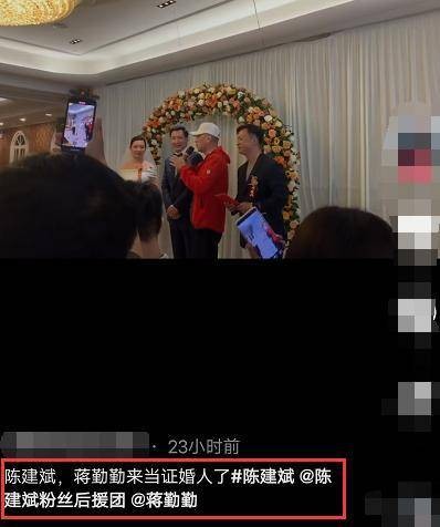 五月二十二日,某主题活动策划者分享了一段视频,内容为知名演员陈建斌携妻子参加朋友的婚宴,并担任主婚人。